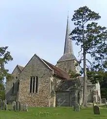 St Giles' Church is an Anglican church in the village of Horsted Keynes in Mid Sussex, one of seven local government districts in the English county of West Sussex. Serving an extensive rural parish in the Sussex Weald, it stands at the north end of its village on the site of an ancient pagan place of worship. The present building succeeds the original wattle and daub church, its wooden successor and a Saxon stone building—although the Norman architects who erected the cruciform structure in the 12th century preserved parts of the Saxon fabric.