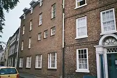 The college is formed from a number of Georgian houses on the Bailey between Durham Cathedral and the River Wear. The main house is Haughton House, named after Haughton Castle in Northumberland, the seat of the family of William Donaldson Cruddas who were early benefactors of the college and other Christian churches and charities in the north east of England.[4][5] The houses which make up Cranmer Hall were once owned by the Bowes-Lyon family (the late Queen Elizabeth The Queen Mother's family). The majority of the college buildings are grade II listed, with parts of 3 and 4 South Bailey grade II* listed.[6] Before coming into the possession of St John's, Linton House, no 1 South Bailey, was the main property of St. Chad's College. It is said to have much earlier origins, with the frontage seen today added to an existing timber-framed building after the Restoration of the Monarchy in 1660.