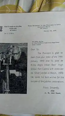 [1]St. John De Britto Anglo-Indian High School is a secondary school in Fort Cochin, Kerala, India.[2] The school is named after John de Britto, a 17th-century Portuguese Jesuit missionary and martyr.
