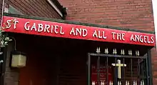 St John the Baptist Church together with St Gabriel and the Angels Church in Castleton, Greater Manchester, are part of the same parish called the Parish of St Gabriel and the Angels and St John the Baptist. In 1879, St Gabriel and the Angels Church started as a mission from St John the Baptist Church. In 1884, a building housing a chapel and school was built. In 1894, a presbytery was added. In 1951, with the increasing Catholic congregation in the area, the former Princess Cinema in Smalley Street (built in 1900) was bought and adapted to replace the old chapel and became the present St Gabriel and the Angels Church.[11]