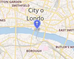 St John the Baptist upon Walbrook was a parish church in the City of London. It stood in Walbrook Ward, with parts of the parish extending into Cordwainer, Dowgate, and Vintry Wards.[1] Of medieval origin, it was destroyed in the Great Fire of London in 1666 and not rebuilt.