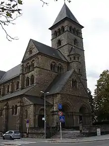 St Joseph's Church in the Limpertsberg district of Luxembourg City is a Roman Catholic church in the Neo-Romanesque style. Designed by the Luxembourg architect Nicolas Petit (1876–1953), it was completed in 1913 and consecrated the same year on 30 April. The interior was substantially renovated in 1976 by the German architect Willy Hahn who added a tabernacle column symbolizing the tree of life.[1][2]