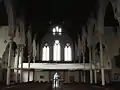 Nave view west, towards the Cafe, with Library at first floor level. The Timber Gallery balustrade surrounds the Nave at first floor level