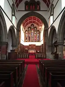 The church was founded in the Anglo-Catholic mould. Indeed, during the incumbency of the second vicar, Fr William O'Brady-Jones, Anglo-Catholic practices were listed in evidence given to the Royal Commission on Ecclesiastical Discipline in 1904.[4] But after his departure 1908, with the then Bishop of Newcastle being unsympathetic to Anglo-Catholics, a Low Churchman was appointed. The High Church tradition lay dormant until Fr Colin Turnbull, who began his ministry as an assistant curate at St Peter's, Wallsend, was made vicar.