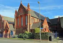 St Luke's Church is an Anglican church in Walton, Liverpool, England; it is enclosed on two sides by Everton Football Club's ground Goodison Park.