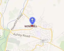 St Mark's church was opened in 1869. It consists of nave and aisles, chancel and south-west tower with broach-spire in the Gothic revival style. The church was designed by Edward Holmes and paid for by the brewer John Gretton of Bladon House (d. 1867). It served a district chapelry, established within Holy Trinity ecclesiastical parish in 1867 and covering the whole of Winshill.[1] Because it was still in Derbyshire, Winshill was originally part of the Archdeaconry of Derby which transferred in 1884 from the Diocese of Lichfield to the newly created diocese of the Diocese of Southwell when that diocese was created in 1884. On 7 July 1927 the archdeaconries of Derby and Chesterfield became the Diocese of Derby.[2][3]