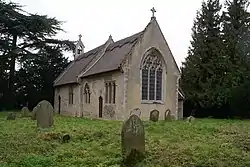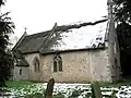 There were further restorations in 1858, 1865 and 1871.[1] In 1858, the upper part of the west wall was rebuilt and a two-light window inserted. In 1865, the interior was re-ordered and the box pews cut down. In 1871, the bell-turret was replaced by a bellcote.[14] Either then or subsequently the tiled and thatched roofs were re-done in slate, and this was first noted in 1903. The demolished north vestry was rebuilt, and the old south porch vestry demolished in lieu.[15]