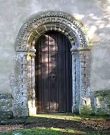 St Mary's Church is a redundant medieval Anglican church in the village of Barton Bendish, Norfolk, England. This village had two more parish churches –St Andrew’s Church, and All Saints’ Church (demolished). St Mary’s is recorded in the National Heritage List for England as a designated Grade I listed building,[1] and is under the care of the Churches Conservation Trust.[2] The architectural historian Nikolaus Pevsner was of the opinion that its west door is "one of the best Norman doorways in England".[2] The church stands in an isolated position to the west of the village.[3]