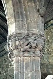 Fragments of Mediaeval wall paintings survive inside the church, including a Doom painting over the chancel arch and Saint Christopher over the north doorway. Remnants of 14th-century stained glass survive in some of the windows.[5] The church's elaborate rood screen dates from the 15th century.