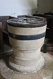 In the church are wall-mounted monuments to members of the Jones family. Most notable are those to Sarah Jones (died 1687), with festoons and weeping putti and to Anne Jones, who died in 1708.[4][5]