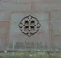 A stone tablet in the enclosure (see here) bears the arms of the Grosvenor baronets with the dates 1599 and 1894 and the inscription: "This stone marks the resting place of those members of the Grosvenor family who were buried in a vault under the old church which was demolished in 1900 and who were reinterred in this plot and their names are recorded on the memorial tablet in Eccleston church." As the inscription indicates, the names of those family members buried here are listed on a large brass wall plaque in the north aisle of the church (see here).