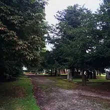 A footpath leads from St Mary's Church past the Old Coaching House to the Old Churchyard, which is about 100 metres (330 ft) northeast of the church. The walls and gates between Old Church Lane and the Old Churchyard are Grade II listed.[11]
