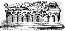 Between the chancel and the Peter Chapel is the recumbent stone effigy and chest tomb of Sir Nicholas de Cantilupe (d.1266) of Withcall in Lincolnshire, Greasley in Nottinghamshire and Ilkeston in Derbyshire, who married Eustachia FitzHugh, daughter and heiress of Ralph FitzHugh of Greasley. His son was William de Cantilupe, 1st Baron Cantilupe (1262-1308) of Greasley and of Ravensthorpe Castle in the parish of Boltby, North Yorkshire. The monument would once have stood in a central position and was mentioned as being in the chancel in 1662 and again in 1716.