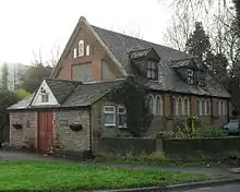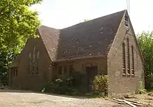 Warninglid, a hamlet with one main street, is 1.25 miles (2 km) south of Slaugham in the south of the parish.[4][31] Architect Francis G. Troup designed a basic chapel of ease for the community in 1935, about a century after one had first been suggested. The cruciform structure was of brick and had some vividly coloured stained glass by J. Hogan of the firm James Powell and Sons, a long-established London-based stained glass company.[31][32][33][34] The chapel, which cost £1,200 (£85,000 in 2022)[24] and had a tall vaulted interior lit by lancets,[31] was sold in 2009, and Mid Sussex District Council gave planning permission for its conversion into a house.[35] It stands at 51.0206°N 0.2179°W on the road to Cuckfield.