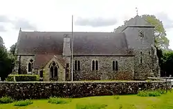 St Mary's Church is an Anglican church in the village of Slaugham in Mid Sussex, one of seven local government districts in the English county of West Sussex. The 12th- and 13th-century church, restored in the Victorian era, serves a large rural area of the Sussex Weald, covering three villages[1] (each with current or former chapels of ease of their own) as well as the ancient settlement of Slaugham. It also controlled the church in the market town of Crawley—now one of the area's largest towns—for the first few centuries of its existence. A locally important family built a private chapel in the church in the 17th century, and a series of memorials to deceased family members are considered to be excellent examples of their type. English Heritage has listed the building at Grade II* for its architectural and historical importance.