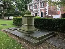 Among the other memorials in the chapel is a mural monument to George Capell-Coningsby, 5th Earl of Essex (1757–1839), which bears a finely sculpted coat of arms;[18] a memorial to Harriet, daughter of the 5th Earl, who died in 1837, aged 29; a simple marble memorial to Arthur Algernon Capell, 6th Earl of Essex (1803-1892); a memorial to his son, Arthur de Vere Capell, Viscount Malden (1826–1879); a memorial to Caroline Janetta, wife of the 6th Earl and daughter of the Duke of St. Albans (died 1862); and a brass tablet to Randolph, second son of Janetta and the 6th Earl of Essex, who served in the naval brigade in the Crimean War at the Battle of Inkerman and the Siege of Sebastopol, and died at Rio de Janeiro, in 1857, aged 25, "much lamented, soon after he had reached that place."[16] Also buried here is Lady Mary Capell (1722–1782), the daughter of William Capell, 3rd Earl of Essex and wife of the Royal Navy officer John Forbes.