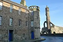 St Mary's College retains much of its original sixteenth-century buildings, specifically the north and West ranges. The Quad contains a thorn tree said to have been planted by Mary, Queen of Scots, during her many visits to St. Andrews. The Quad also contains the historic King James Library founded by King James VI & I in 1612.[6] In addition, the College has The Roundel, a 16th-century building dedicated for doctoral students studying divinity at the University of St Andrews.