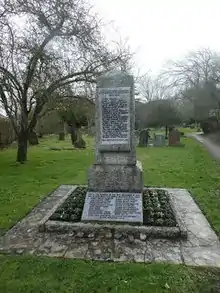 The Sidlesham War Memorial is a grade II listed structure. It is located within the churchyard and consists of a squat obelisk on a square plinth. It is set within a small kerbed enclosure. It was originally constructed in the 1920s to commemorate the 20 Sidlesham people who lost their lives in the First World War.[12]