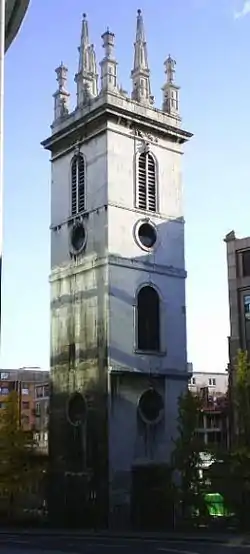 At the instigation of the architect, Ewan Christian, the church tower was preserved.[4] The proceeds of the sale were used to build St Mary Hoxton, which also received the church furnishings and the bell.