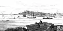Michael Vyvyan, a member of the local gentry, was appointed as the first captain of St Mawes and the surrounding land in 1544, and was followed by Hannibal Vyvyan in 1561.[20] On Vyvyan's death in 1603, his son, Sir Francis Vyvyan, became captain.[21] The captains of St Mawes frequently argued with those of Pendennis Castle and in 1630 a legal dispute broke out about the rights to search and detain incoming shipping: both castles argued that they had a traditional right to do so.[22] The Admiralty issued a compromise, proposing that the castles share the incoming traffic.[23] Sir Francis was dismissed from office in 1632, accused of "practising a variety of deceptions" at St Mawes, including falsely claiming wages for non-existent members of the garrison, and was replaced by first Sir Robert Le Grys and then Thomas Howard, the Earl of Arundel and Surrey.[24]