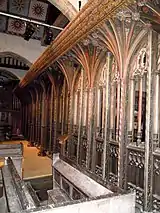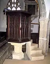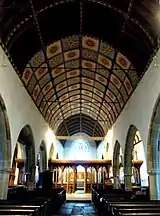 The whole building is fitted out with a fine if plain set of pews mostly dating from the 16th-century.[3][4]