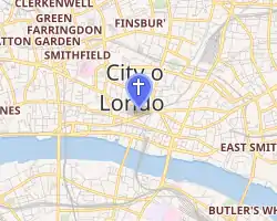 St Pancras, Soper Lane, was in the Ward of Cheap, City of London.[3] The street from which it took its name was renamed after the Great Fire,[4] although sources vary as to whether it became Queen Street[4] or Pancras Lane.[5] The church was first built in the twelfth century.[6] It was a small building, with a tower containing five bells. There was a chapel on the north side.[6]