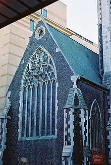 The exterior of the church consists of knapped flint dressed with Caen stone, a type of limestone also used on the Tower of London. Inside, as well as a nave and chancel, there are two vestries, an organ chamber and a small "crypt chapel" dug into sloping ground. This subsequently became a library.[8] One of the vestries was originally built as a reading-room;[7] it is now known as the "Fishermen's Vestry".[9]