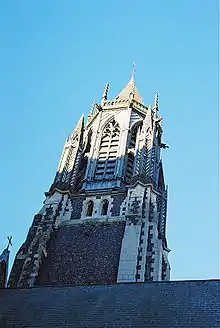 Rev. Wagner inherited his father's wealth upon his death in 1870, and in 1873 spent more than £4,100 on a tower and bells for the church, which had lacked either a tower or a spire until that time. Cheesman & Son builders took sixteen months to build the tower, completing it in February 1875.[14] The tower once contained change ringing bells, however they were removed after the tower became unsafe. Two bells remain in the tower, one cast in 1873 by Mears and Stainbank, and the larger of the two cast in 1853 by C & G Mears with a weight of 38 hundredweight, three quarters.