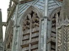 Alterations in 1861 included the construction of a narthex at the western end, additions to the rood screen between the chancel and the nave, and a reredos designed by Edward Burne-Jones, whose career as an artist was just beginning at this time. The reredos was designed as a triptych; in its central panel, depicting the Adoration of the Magi scene, one of the Magi is a representation of William Morris, the artist, writer and socialist activist: Morris and Burne-Jones were friends and artistic collaborators. Local Gothic revivalist George Frederick Bodley was chosen as the architect for the project as a whole.[13]