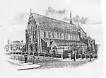 The new church was designed by the London architect George Michael Silley (b. 1834),[4] and was built of red brick with Carsham-stone dressing, topped with a flèche. The building was in the style of 13th-century English Gothic architecture. It was constructed of Peterborough red brick with Bracknell stone dressings, with a chancel, south-east chapel and bell-cot, north vestries, and an aisled and clerestoried nave of six bays with north-west and south-west porches. When built the church seated 700.[3] (NB The chancel and Lady Chapel, both in a later Decorated English Gothic style, were not completed until 1903).