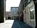 Shops, including Bandwagon Music Supplies, in the square