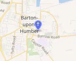 The church lies immediately east of the remains of a near circular enclosure which contained a hall. This is, on average, 820 feet (250 m) in diameter and was originally surrounded by a ditch and timber palisade known to date to before 900. An early pagan Saxon cemetery, believed to be linked with this enclosure and dated to the first half of the seventh century, was discovered at Castledyke, south of the church, and was used to bury high-status individuals. In 669 Saint Chad founded a monastery in neighbouring Barrow-upon-Humber. An Anglo-Saxon charter dated 971 suggests that Barton became a grange attached to this monastery.[1][2]