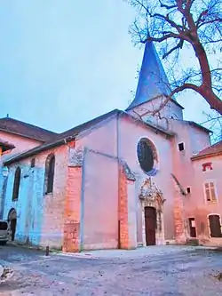 The church stands at the heart of the upper town, which had fortifications in the Middle Ages. Its entrance portal looks out onto a square on which stand a mission cross and the portal of the clergy house, both classified monuments historiques as well.