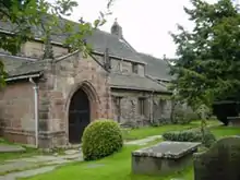 The outstanding feature of the churchyard is the Norman Chapel.[8] Dating from 1175 to 1190, it began to fall into disrepair a few years after the present church came into use. In 1747 it was rebuilt by Sir William Meredith of Henbury so that his son Amos and other members of his family could be buried there. Restored in 1953, it is now used for a variety of church purposes.