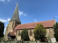 St Peter's Church is in the village of Scorton, Lancashire, England. It is an active Anglican parish church in the deanery of Garstang, the archdeaconry of Lancaster and the diocese of Blackburn. Its benefice is united with those of All Saints, Barnacre, and St John the Evangelist, Calder Vale.[1] The church is recorded in the National Heritage List for England as a designated Grade II listed building.[2] Its spire is a landmark near the M6 motorway.[3]