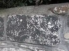 The churchyard wall has coping blocks formed from copper-slag, the same material used to construct the Black Castle Public House.[5]