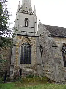 There were two churches at Caythorpe in the 11th century, recorded in the 1086 Domesday Book.[5] The present church building dates from the early, and chiefly completed before the middle of, the 14th century. The construction was probably sponsored by the niece of Edward II, Lady Elizabeth de Burgh who held the local lordship. The patronage of the present church at origin was held by the Knights Hospitaller, whose earlier Knights Templar had their Lincolnshire headquarters at Temple Bruer, 6 miles (10 km) to the north-east.[2]