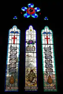 Plaques on the north aisle north wall are to those of the parish killed in the First and Second World Wars, and to those of the 1st Airborne Signals who fought in 1942–45 campaigns in Italy and North Africa. A further plaque describes the dedication of the north aisle to "the memory of the men of the First Airborne Divisional Signals who were billeted in the Parish and neighbourhood before flying to Holland [sic] in their valiant attempt to establish a bridgehead over the River Rhine at Arnhem. September 17th 1944."[15][34]