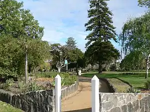 The improved appearance of the gardens over recent years has been due to local government projects completed in response to a Conservation Analysis & Management Strategy, by landscape architect Jill Orr-Young, Dec. 1997. The creation of mulched beds around significant trees has improved their condition and large herbaceous beds have been restored using heritage plant stock. Further detailed historical investigations by Jill Orr-Young have led to the works described below. Reconstruction of the western half of the gardens' path network accurately plotted heritage alignments and used the original orange-coloured, granitic, sand surface and mild steel edging. This work included the installation of an on-site stormwater dissipation system, which now uses surface runoff to help irrigate lawn areas and minimise water usage. The perimeter hedge around the gardens uses original Lonicera heritage plant stock sourced from Dame Elisabeth Murdoch's 'Cruden Farm.' This hedge will grow to a height of approximately 700mm. The design of entry treatments for each of the entrances to the Gardens comprises bluestone walls and timber posts, with the new entrances designed to closely resemble the original appearance and layout of the old entrances. The northern and southern border beds have been planted with heritage plant stock in accordance with planting designs prepared by Jill Orr-Young.[3]