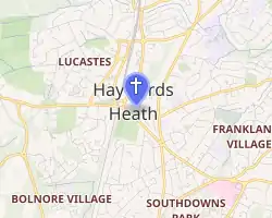 The parish of St Wilfrid covers a large part of the south side of Haywards Heath and the surrounding countryside, and until 2003 included two daughter churches—one of which was outside its boundary. The newly developed Bolnore Village estate, which does not have its own church, is part of the parish.[32]
