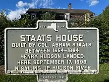The Staats House is a historic building located along the Hudson River near Stockport, Columbia County, New York. The first house at this site was burned and rebuilt on the original foundation c. 1664.[1]