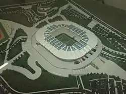 This stadium will accommodate up to 50,766 spectators. It was named in honor of their deceased 1970s president, Abdelkader Khalef, who devoted his life to Kabylie. A consortium composed of the group Spanish Fomento de Construcciones y Contratas and Algerian group ETRHB Haddad was allocated for the construction of the stadium. In October 2014, the Spanish group has been replaced by MAPA Insaat ve ticaret, a Turkish construction group. Kabylie had the construction of promise this stage from the Algerian President Abdelaziz Bouteflika, right after the third CAF Cup that they have won. Work officially started May 15, 2010.[2]