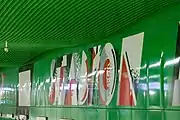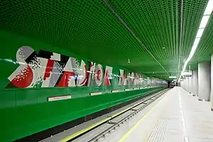 The station fully opened for passenger use on 8 March 2015 as part of the inaugural stretch of Line M2 between Rondo Daszyńskiego and Dworzec Wileński.[1][2] It was designed by Polish architect Andrzej M. Chołdzyński and constructed by Metroprojekt.[3] Murals were created by Wojciech Fangor, artist of the Polish School of Posters.