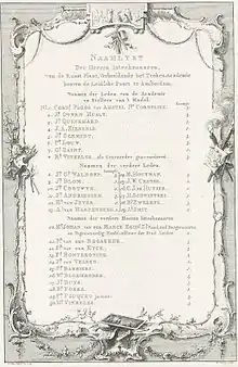 - "Namenlijst van de intekenaren op de prent van de stadstekenacademie te Amsterdam, 1764-1767, Reinier Vinkeles, 1768", Rijksmuseum Amsterdam (Dutch)