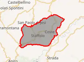Staffolo is a comune (municipality) in the Province of Ancona in the Italian region Marche, located about 35 kilometres (22 mi) southwest of Ancona. As of 31 December 2004, it had a population of 2,304 and an area of 27.6 square kilometres (10.7 sq mi).[3]