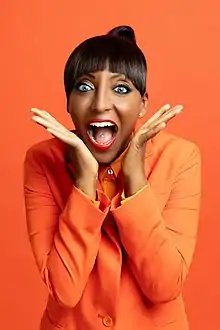 To promote the entry, a music video for "Stand By" was filmed in London and San Marino and released as part of the song's presentation on 11 March 2011.[12] A promotional tour saw Senit performing in nearly 40 countries including Albania, Malta, Greece, Turkey, Georgia and the United Kingdom.[14][15][16] On 9 April, Senit was one of several participants of 2011 who participated in the third annual Eurovision in Concert series, an event held at Club Air in Amsterdam, Netherlands staged to serve as a preview party for the year's entries.[17][18] She and her backing vocalists were interviewed by website ESCToday on 2 May 2011 after their first technical rehearsal, speaking about their experiences performing the song and what viewers could expect for their final performance.[16] In the lead up to the contest, the delegation hosted a Eurovision-themed party on 8 May, where Senit performed the song live. Invitations to the event were also extended to contestants from other countries competing that year, encouraging them to perform as well.[19]