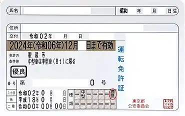 | Ordinary motorcycle | 普通自動二輪車 | Any motorcycle with engine displacement over 50 cc but no more than 400 cc. |