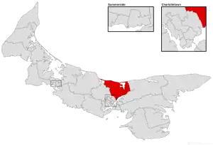The riding consists of rural communities north-east of Charlottetown, including Brackley Beach, Marshfield, and Stanhope.