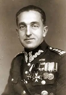 In the years 1922–1923 he was a student of the Training Course at the Wyższa Szkoła Wojenna in Warsaw. On October 15, 1923, after completing the course and obtaining the academic title of Certified officer, he was assigned to the 20th Infantry Division for the position of chief of staff.[4] On November 1, 1923, he was assigned to the Army Inspectorate No. I in Vilnius as the 2nd clerk.[5] On September 1, 1926, he was transferred to the composition of the general to work at the General Inspector of the Armed Forces, Brigadier General Stanisław Burhardt-Bukacki to the position of the first officer of the staff.[6] On March 31, 1927, he was transferred to the 82nd infantry regiment in Brest to the position of the regiment commander.[7] In October 1931 he was appointed commander of the infantry division of the 9th Infantry Division in Siedlce.[8] In 1934 he was transferred to the Corps District Command No. VII in Poznań to the position of the assistant commander for supplements.[9] On April 2, 1938, he was appointed commander of the 16th Pomeranian Infantry Division in Grudziądz.[10]