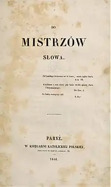 - (1846). To the Masters of the Word (Do mistrzów słowa). First published in Paris: Catholic Bookshop Poland (poetry).[31]